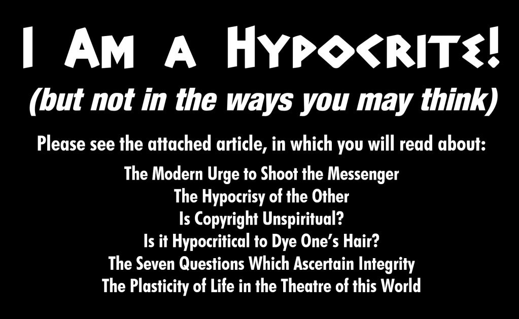 People seem to love to try and prove that other people are hypocrites and phonies — that their actions don’t match the standards they espouse. It is always the hypocrisy of the other. A typical accusation of this nature which I’ve received on a few occasions I have here conflated into this: