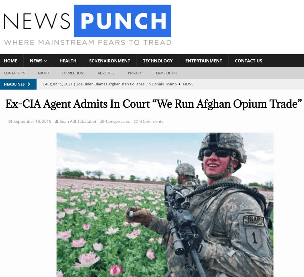 - Ex-CIA Agent Admits In Court “We Run Afghan Opium Trade” (see https://newspunch.com/ex-cia-agent-admits-in-court-we-run-afghan-opium-trade/ )