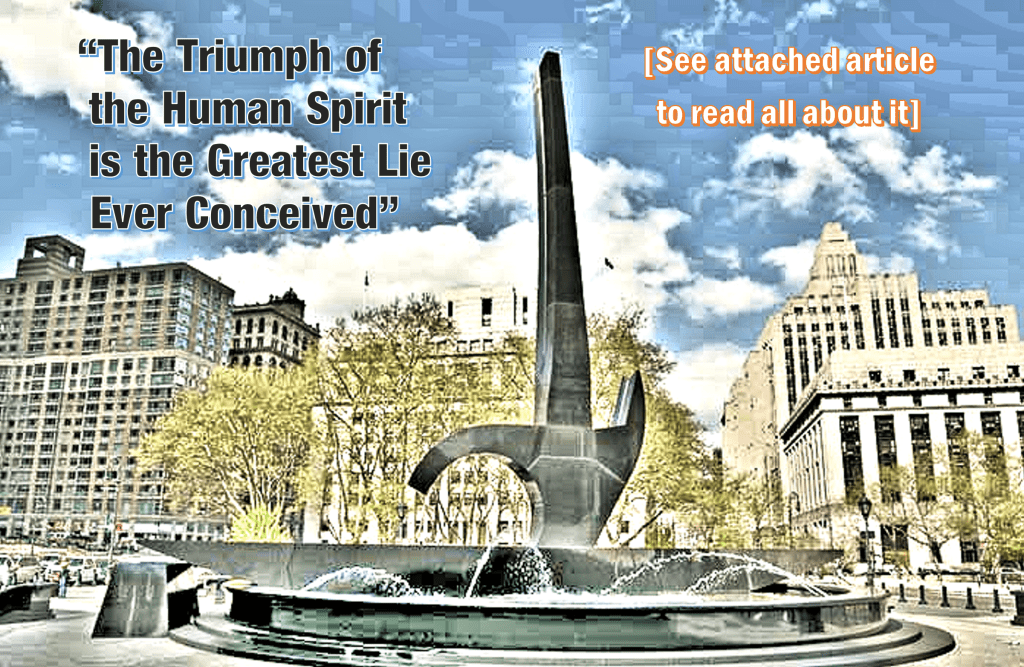 [The image accompanying this article is a photo of The Triumph of the Human Spirit, a black granite sculpture made in 2000 by Lorenzo Pace, installed at Manhattan’s Foley Square, in the U.S. state of New York. I don’t think I’ve ever seen a more uninspiring piece of “art” in my entire life!]