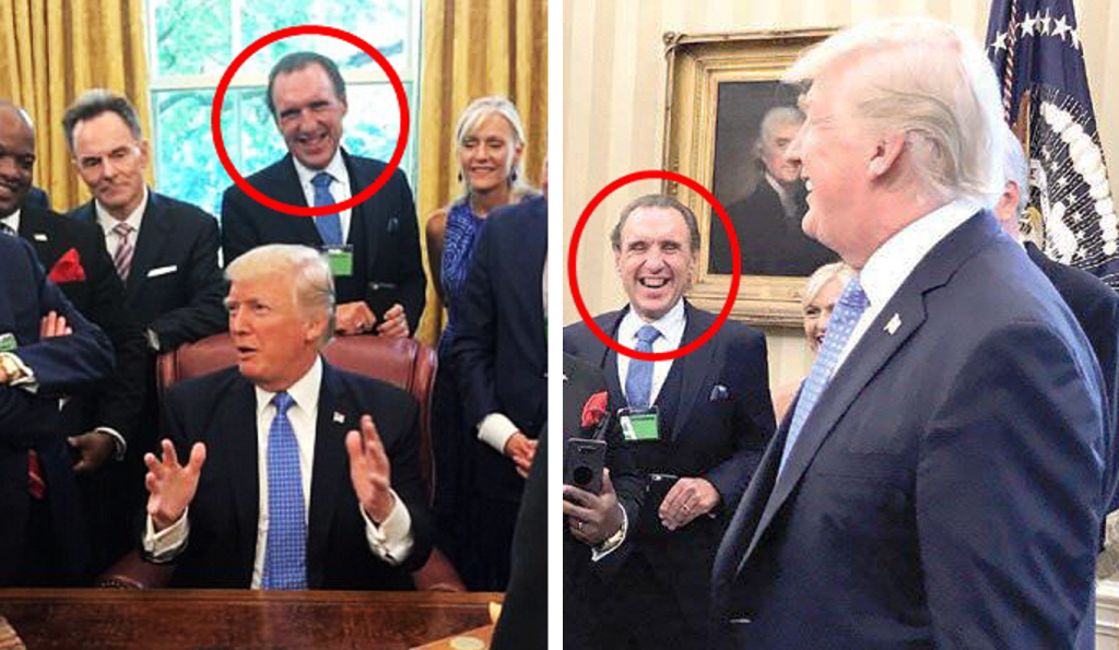 Yes, it is extremely relevant because Kenneth Hagin, Kenneth Copeland and Rodney Howard-Browne (who was catapulted to fame by Copeland) are the Big Daddies of the present-day manifestation of the movement. Rodney Howard-Browne went from being a tubby “bartender of the Spirit” (as he was known in the 1990s) to winding up as one of Donald Trump’s ‘spiritual advisors’ when he was President of the USA (as you can see briefly in my original article’s link to that episode). People think it is only the equally reprehensible Paula White who is Trump’s sole ‘spiritual advisor’. Not so. He has a number of them through his ‘Evangelical Executive Advisory Board’. Rodney Howard-Browne was among a posse of so-called “evangelical leaders” (a phrase which means absolutely nothing anymore) who performed a “laying on of hands” ceremony on Trump in the Oval office of the White House not very long ago (see the two accompanying photos below, in which he looks much slimmer). Both Rodney Howard-Browne (https://www.ncronline.org/news/key-evangelical-players-trumps-advisory-board ) and Kenneth Copeland (and his wife) are actually on Trump’s ‘Evangelical Executive Advisory Board’. https://www.presidency.ucsb.edu/documents/trump-campaign-press-release-trump-campaign-announces-evangelical-executive-advisory-board . The kind of antics to which I referred in my article and which you saw in the videos are happening to a greater or lesser degree in multiple churches all over the world — all the more so when they hold special occasions or manage to generate a so-called “revival”, which they love to do in order to crank things up and keep the hypnotic momentum going.