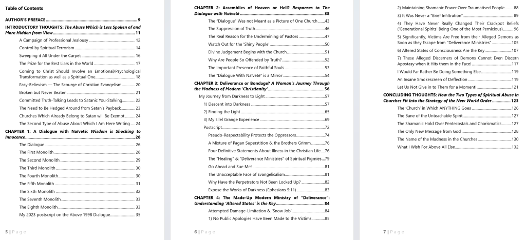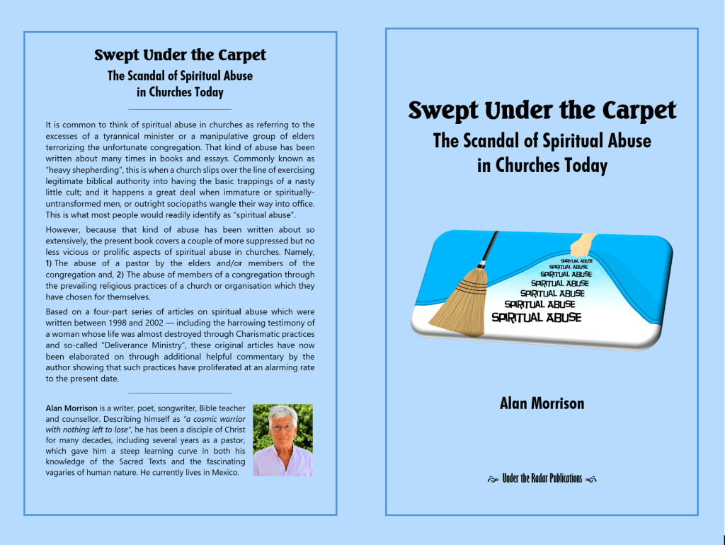 This 132-page, 44,000-word book, based on a four-part series of articles on spiritual abuse which were written between 1998 and 2002, shows the shocking treatment of many Pastors, and includes the harrowing testimony of a woman whose life was almost destroyed through Charismatic practices and so-called “Deliverance Ministry”. These original articles have now been elaborated on through additional helpful commentary showing that such practices have proliferated at an alarming rate to the present date.