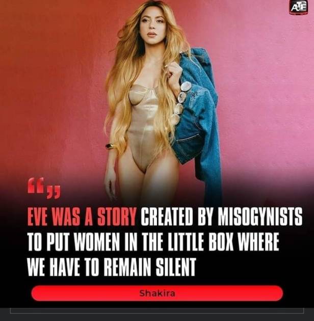 Paul’s observation that it was Eve who was deceived by Satan is most pertinent. For Adam was deceived by Eve, whereas she was directly deceived by Satan. This is an archetypal reason why women should not be leading and should be in submission to men. It is in this connection that women in the secular scene have so often had a tendency to be witches. They operate by nature on a plane which can be their salvation or their downfall. They are easily attracted to, and have a weakness for, what one can call ‘woo-woo’ (dictionary definition of ‘woo-woo’: “Pseudoscientific, supernatural or emotion-based beliefs with little or no scientific or logical basis”). That is why the New Age scene is so dominated by women with wiccan tendencies. Women can be extremely unstable, making decisions based on subjective emotion rather than fact, especially if they are not grounded in the fullness of faith. Such a character is not what is required for good leadership and authority. It is hardly surprising that so many woman today regard this reference to Eve as being a religious plot to put them down (see, for example, the quote from the Columbian singer, Shakira, in the image below).