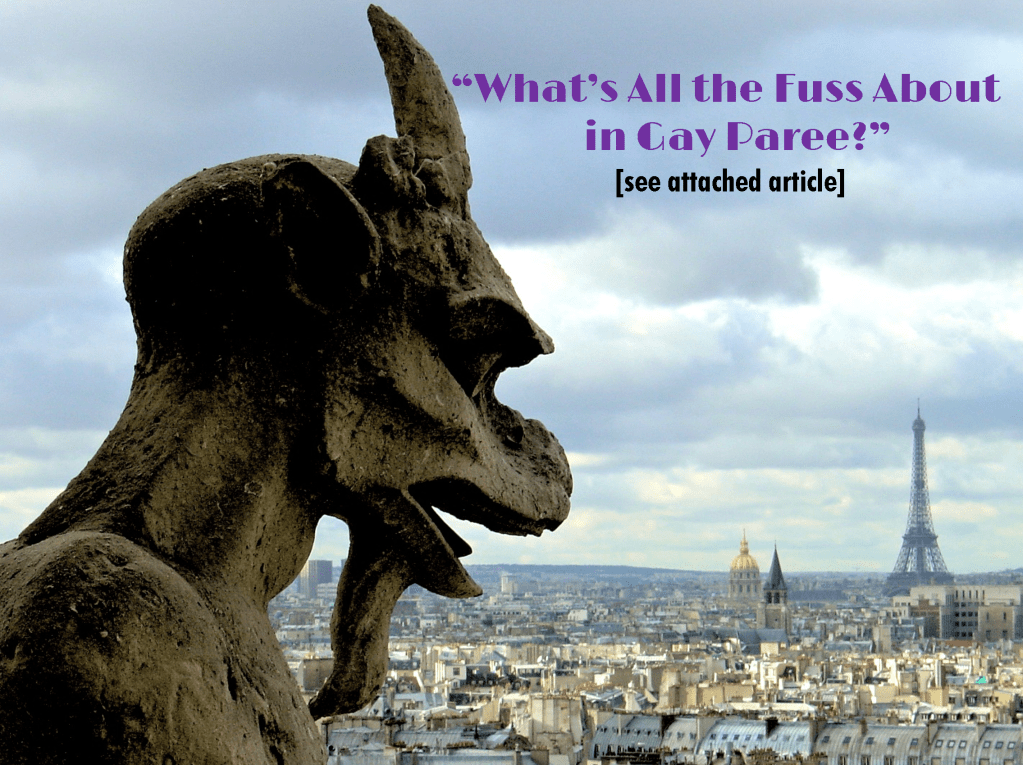 [The attached image is of one of the gargoyles on the Notre Dame Cathedral in Paris, overlooking the Eiffel Tower]
