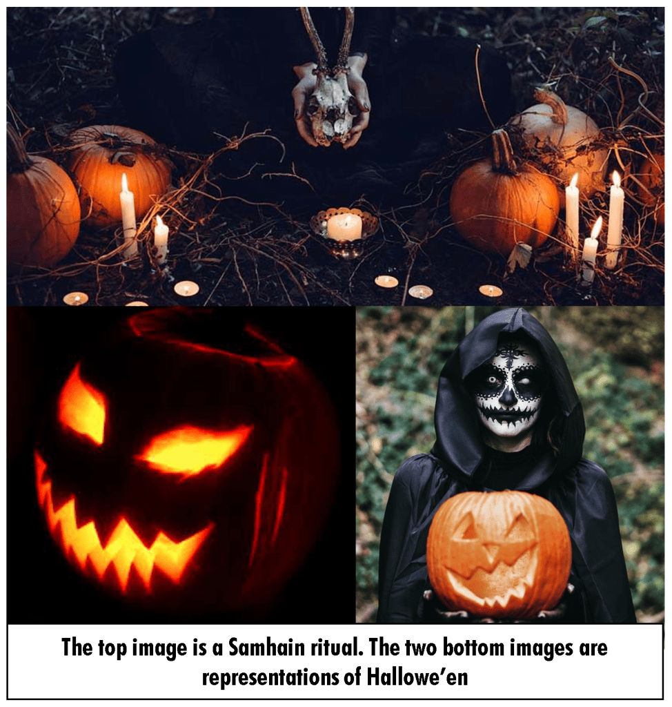 “What we now know as ‘Halloween’ developed from ancient New Year festivals and festivals of the dead. In pre-Christian Britain, October 31st was considered as the eve of New Year, when the souls of the dead — especially those who had died in the past year — were believed to revisit their homes. After it became a so-called “Christian” festival (as we’ll see later), the evil supernatural symbolic associations continued — alongside such customs as the shaping of a demonic face out of a hollow pumpkin, in which a candle is placed. In the Halloween which people celebrate today, many of the practices have a direct association with witchcraft. Let’s have a look at the history: