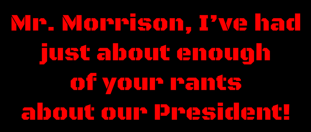 Objection: “Mr. Morrison, I’ve had just about enough of your rants about our President, Donald Trump! They are so wide of the mark and chock full of bull. You really have no clue what you are talking about. Just stick to teaching Bible, though it’s boring enough when you do that. What makes you think that you, an ignorant Englishman, have anything to offer concerning the politics of the United States of America? Try writing about your own leaders who seem to be successfully destroying your country. At least President Trump is a Christian man of integrity who acts on his word for the people, which is more than I can say for your Prime Minister. I will be removing myself from your lists”.