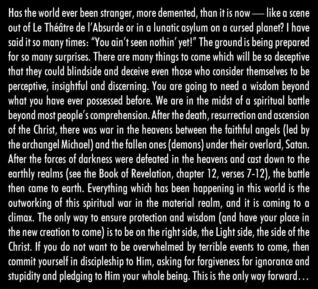 Articles, Memes Thought for the Day… “Has the World Ever Been Stranger?” (please read the words in the image below) Date: 2025-02-17Author: The Diakrisis Project 2 Comments Share this: Click to share on X (Opens in new window) X Click to share on Facebook (Opens in new window) Facebook Like Loading...