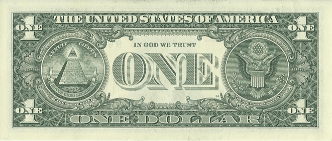 Another image (see above) shows George Washington in full Masonic regalia surrounded by potent Masonic symbols, including an all-seeing eye as capstone above his head. According to Greek historian Plutarch (46-120), in his work on Isis and Osiris, the main god of Egypt (the religious source of much of the mythology of Freemasonry) was represented by the symbol of an eye. According to A.E. Waite’s Encyclopedia of Freemasonry, the all-seeing eye is a symbol of “when the eye of the soul is opened and God is known of the heart”. This mystical occult Freemasonic symbol is at the centre of the making of the New World Order envisaged by Rosicrucians and Freemasons for centuries. This all-seeing eye symbol — designed by Freemasons in 1782 — is now on the reverse side of the Great Seal of the United States of America and is found on one-dollar U.S. notes over the words “Novus Ordo Seclorum” — which is Latin for “New Order of the Centuries or Ages” and has been seen to represent what people are now calling the “New World Order” (see image below). As Wikipedia rightly states: