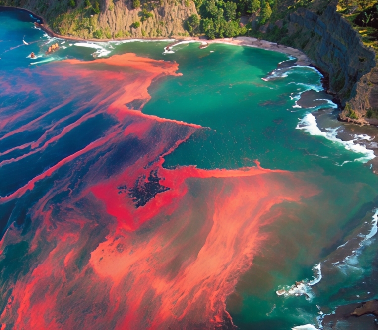 The second trumpet is concerned with the effect on the sea by some extraordinary elements. Even in recent times there have been many cases where the sea has turned red as blood — known as a ‘red tide’ — due to algae and bacteria which kill fish and other living organisms (see image, above). Imagine this happening on a vastly increased basis across the oceans in the future, leading to immense loss of aquatic life. We also see in this text that “something like” a great mountain burning with fire is said to be thrown into the sea. Lava from volcanoes regularly pours into the sea, causing noxious effects. But most interesting is that 80% of volcanic eruptions on earth take place under an ocean. Most people would be currently completely unaware of these happenings. But imagine a future when such events begin to peak hugely and create spectacular outcomes, including many species of sea life dying in the chemical soup caused through them.