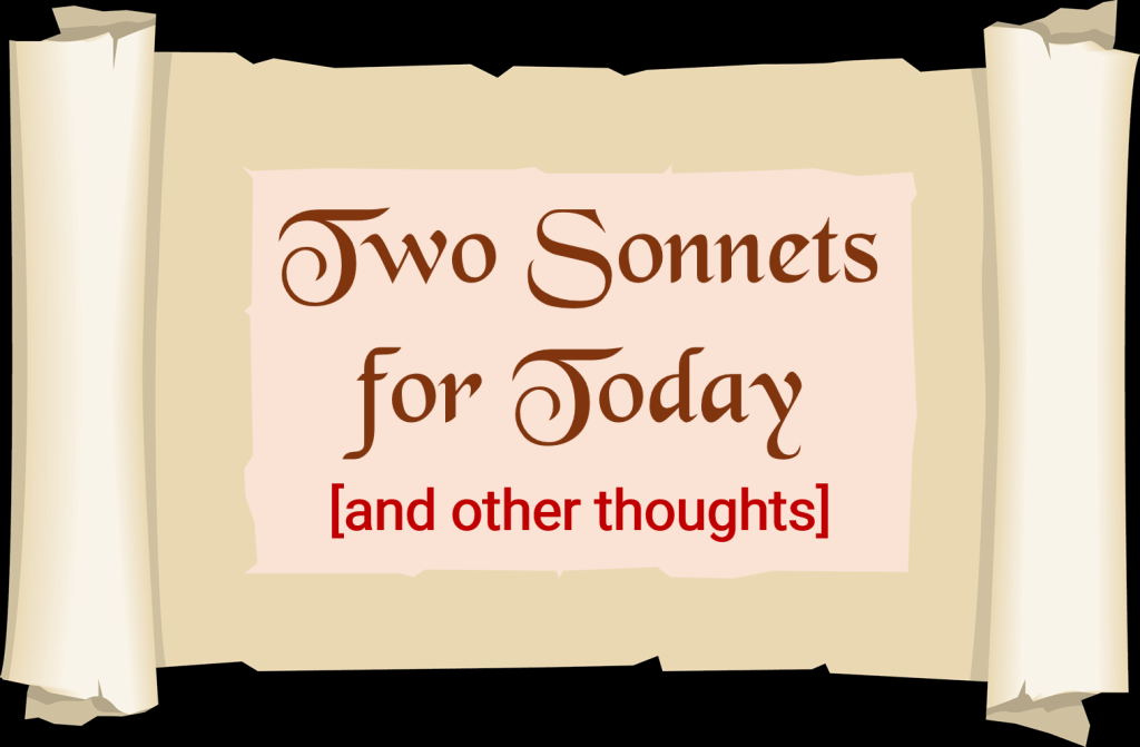 I AM JUST COMPILING a “Book of 330 Sonnets” containing 330 (obviously!) of the sonnets which I have written over the years, which should be ready within a few weeks. (If you are interested in proofreading this work, please let me know! It will contain just under 200 pages with two sonnets per page). The interesting thing is that while compiling and designing this book, I keep being inspired to write new sonnets! Two have come already today. I cannot keep them from bubbling-up. It’s like multiple births! “Whoops, here’s another one!” So I thought I would share those two sonnets with you here as they are somewhat topical: