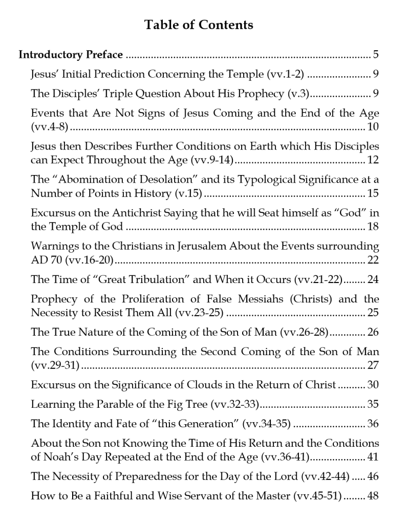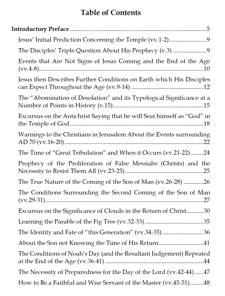I am currently up to verse 41 out of 51 verses in the entire chapter. The most difficult verses (15, 34, 36) which each needed mini-essays are now behind me, so it should just be just another week at most, I reckon, to have a first draft chapter ready for proofing. The chapter so far has 52 pages consisting of almost 19,000 words. Maybe ten pages more to be written and then a final read-through, then completion in a week. The pages are large format paperback size. While chapter 24 is being proofread, I can than get to work on chapter 25. Here is an image of the Contents page of this chapter: