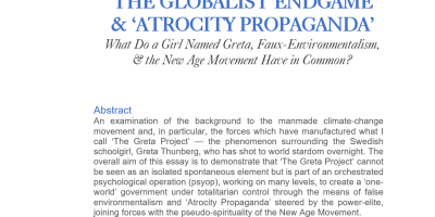 Articles The Globalist Endgame & ‘Atrocity Propaganda’: What Do a Girl Named Greta, Faux-Environmentalism, & the New Age Movement Have in Common? 2019-10-30 — 0 Comments